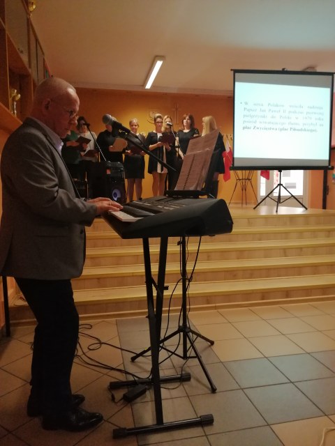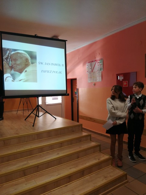 26 października w naszej szkole, odbył się apel z okazji 44 rocznicy wyboru Karola Wojtyły na papieża. Działania te odbyły się w ramach akcji organizowanej przez Ministerstwo Edukacji i Nauki „ Szkoła pamięta”. Uczniowie przygotowali prezentację poświęconą ważnej postaci dla historii. Przybliżyli nam drogę Karola Wojtyły do papiestwa i świętości. Apel został uatrakcyjniony ulubionymi pieśniami papieża takimi jak „ Czarna Madonna” czy „ Barka”, które zostały wykonane przez zespół wolkalny nauczycieli, pod kierunkiem pana dyrektora Zbigniewa Guzmana. Występ został nagrodzony gromkimi brawami.