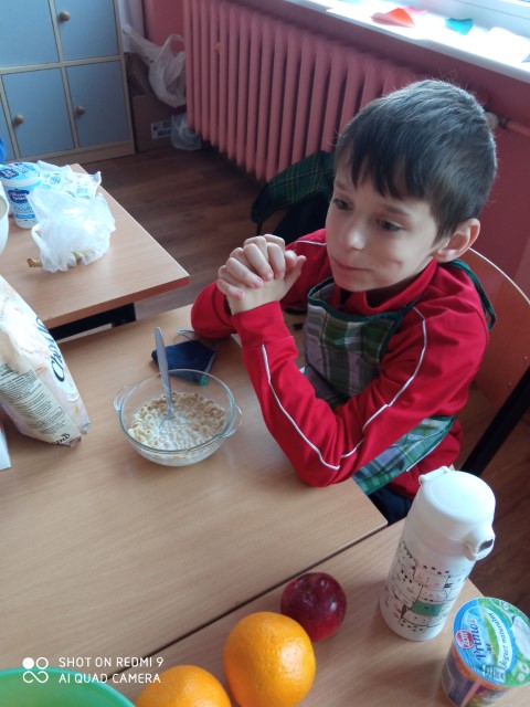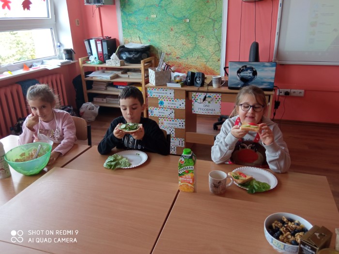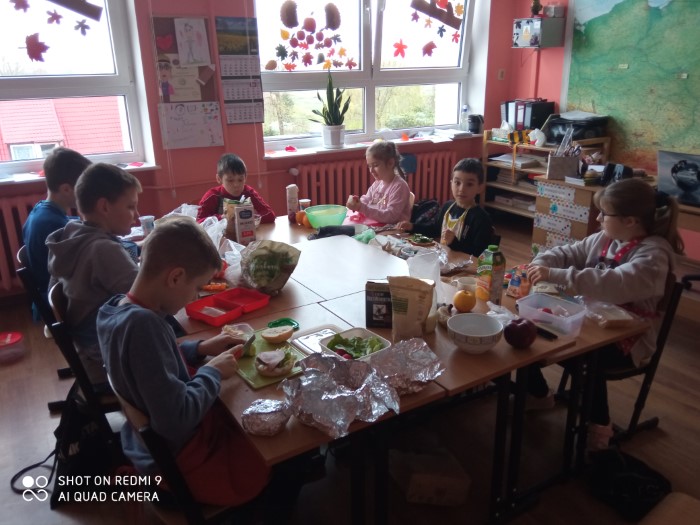 Święto te, jest nowym dniem w naszych kalendarzach, bo dopiero od kilku lat. Jego ustanowienie jest odpowiedzią na rosnący problem otyłości wśród dzieci i młodzieży. Pomijanie porannego posiłku to jeden z najczęstszych błędów żywieniowych. Śniadanie to najważniejszy posiłek dnia, który dostarcza nam niezbędnej energii, dlatego uczniowie klasy trzeciej, w tym dniu przygotowali swoje ulubione śniadanie z pełnowartościowych produktów. Odpowiedzieli sobie na pytania: Jak wyglądają ich śniadania? Czy codziennie je jedzą? Czy w ich śniadaniach nie brakuje ważnych składników odżywczych takich jak warzywa i owoce? Przypomnieli sobie piramidę zdrowego żywienia. Zdrowa dieta jest podstawą do dobrej kondycji i zdrowia!