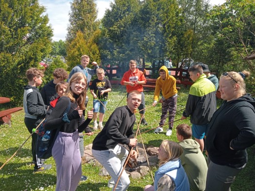 Uczniowie klasy VII I VIII mieli okazję spotkać się przy wspólnym ognisku z pieczeniem kiełbasek w szkolnym Ogrodzie Wypoczynkowym “Przyrodnik”. Spotkanie było świetną okazją do integracji oraz przyjaznych rozmów najstarszych uczniów naszej szkoły, szczególnie po trudnym czasie egzaminów ósmoklasisty. Ognisko było również podsumowaniem realizacji programu profilaktyki i promocji zdrowia “Apteczka pierwszej pomocy emocjonalanej”. Mimo pochmurnej aury pogodowej, humory dopisywały, nawet na zakończenie zaświeciło nam słońce :)